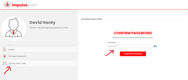 From the dropdown menu, select "Edit My Profile." Locate the "Alcohol Sales Code" option, confirm your identity, and input your password. Once your identity is verified, you will gain the capability to download, email, or print a unique barcode specifically designed for alcohol sales.
